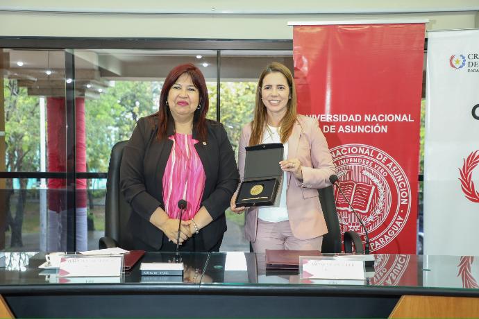 La Rectora de la UNA, Prof. Dra. Zully Concepción Vera de Molinas, y la Presidenta del CAH, Msc. Ing. Agr. Amanda León Alder, rubricaron este importante compromiso que permitirá: